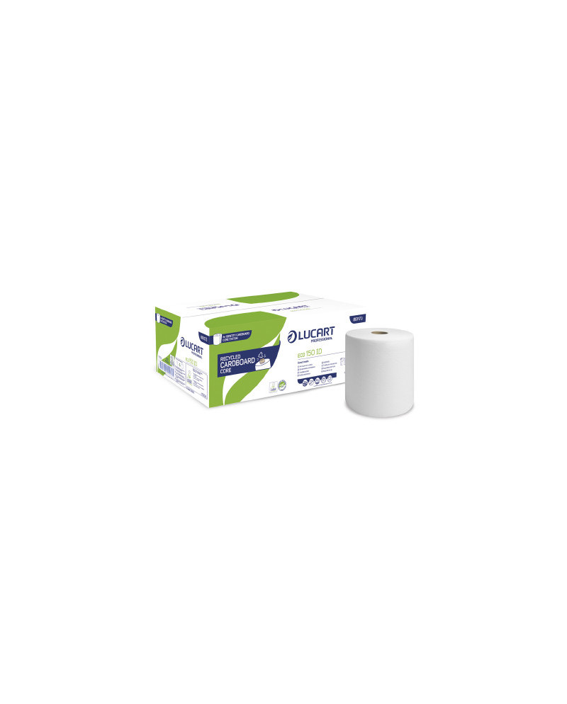 La Bobina Secamanos Autocorte ECO 150M ID de Lucart es una opción ecológica y eficiente para el secado de manos, ofreciendo hasta 536 servicios por rollo y compatibilidad con dispensadores Identity.