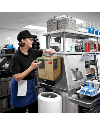 El dispensador de rollos Combi en caja Tork es un dispensador sencillo y abierto que está especialmente diseñado para ser utilizado con los rollos Combi en caja de Tork.