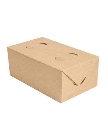 Esta caja de comida para llevar de aproximadamente 11×18×7 cm es perfecta para el servicio take‑away o delivery profesional. Fabricada en cartón kraft blanqueado o bagazo compostable certificado, está diseñada con una barrera interna contra la grasa y humedad, permitiendo transportar alimentos fríos y calientes sin filtraciones.