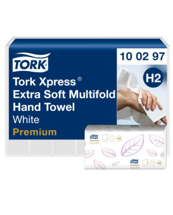 Tork Xpress® Toalla de Mano Entreplegada Extrasuave Blanco H2: Los aseos de gama alta exigen toallas de papel de gran calidad, con un aspecto atractivo y suaves al tacto. Estas toallas de papel con tecnología QuickDry™ son suaves y absorbentes para ofrecer un secado de manos eficaz. Su diseño atractivo con un gofrado de hojas y su suavidad al tacto causarán un buena impresión a los usuarios. Son compatibles con el sistema Tork Xpress®, ideal para aseos de tránsito moderado y se adapta a espacios reducidos. Cuentan con la certificación FSC y la etiqueta ecológica de la UE, por lo que son respetuosas con el medioambiente.