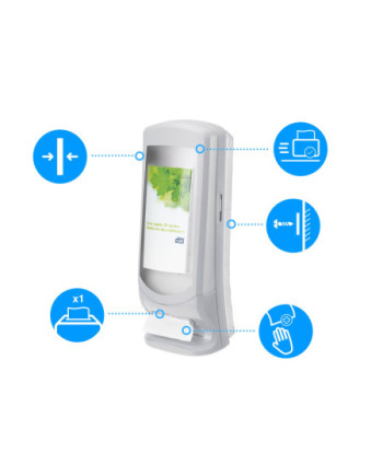 Su diseño vertical hace que ocupe menos espacio en el mostrador El montaje sobre la pared permite una instalación rápida y permanente Fabricado con materiales duraderos y fáciles de limpiar que reducen las tareas y los costes de mantenimiento. El panel de visualización personalizable AD-A-Glance® sirve de herramienta publicitaria para promocionar sus productos y comunicarte con tus clientes. Diseño: Signature line. W 23.5cm. H 62.2cm. D 23.5cm. Material: Plástico. Color: Gris claro. Apto para N4 recambios de Tork.