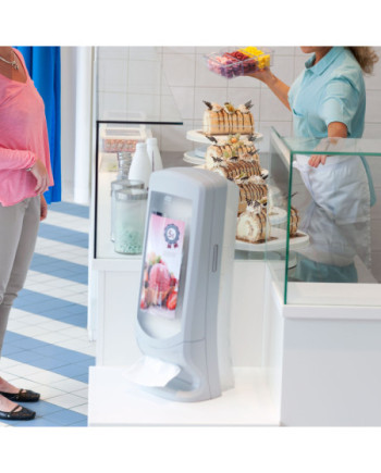 El dispensador de servilletas vertical Tork Xpressnap® es ideal para restaurantes de servicio limitado con mucho tránsito. Este moderno dispensador ofrece una servilleta cada vez, lo cual mejora la higiene y reduce el consumo en al menos un 25 % en comparación con los sistemas de dispensación de servilletas tradicionales.