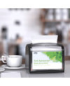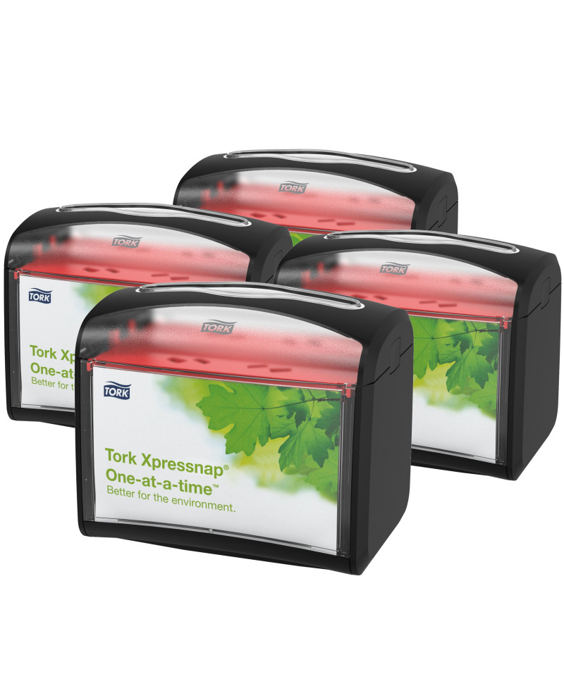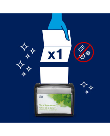 El dispensador de servilletas para mesa Tork Xpressnap® es ideal para restaurantes de servicio limitado que ofrecen servilletas en la mesa. Este moderno y compacto dispensador ofrece una servilleta cada vez, lo cual mejora la higiene y reduce el consumo en al menos un 25 % en comparación con los sistemas de dispensación de servilletas tradicionales. No tendrás problemas con que haga juego con tu decoración, ya que está disponible en una amplia gama de modernos colores.