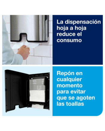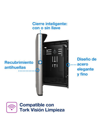 Tork Xpress® Dispensador para Toalla de Mano Entreplegada de Acero Inoxidable H2: Si causar una buena impresión a tus clientes es primordial, elige este dispensador. Su diseño elegante es perfecto para aseos de lujo. La dispensación hoja a hoja mejora la higiene y reduce el consumo, ya que los clientes solo tocan lo que necesitan. Para facilitar el mantenimiento, la superficie de acero inoxidable pulido cuenta con revestimiento antihuellas. Además, tiene una tapa con bisagras laterales para una recarga rápida. Neutral en Carbono - producido con electricidad renovable certificada y compensado con proyectos climáticos.